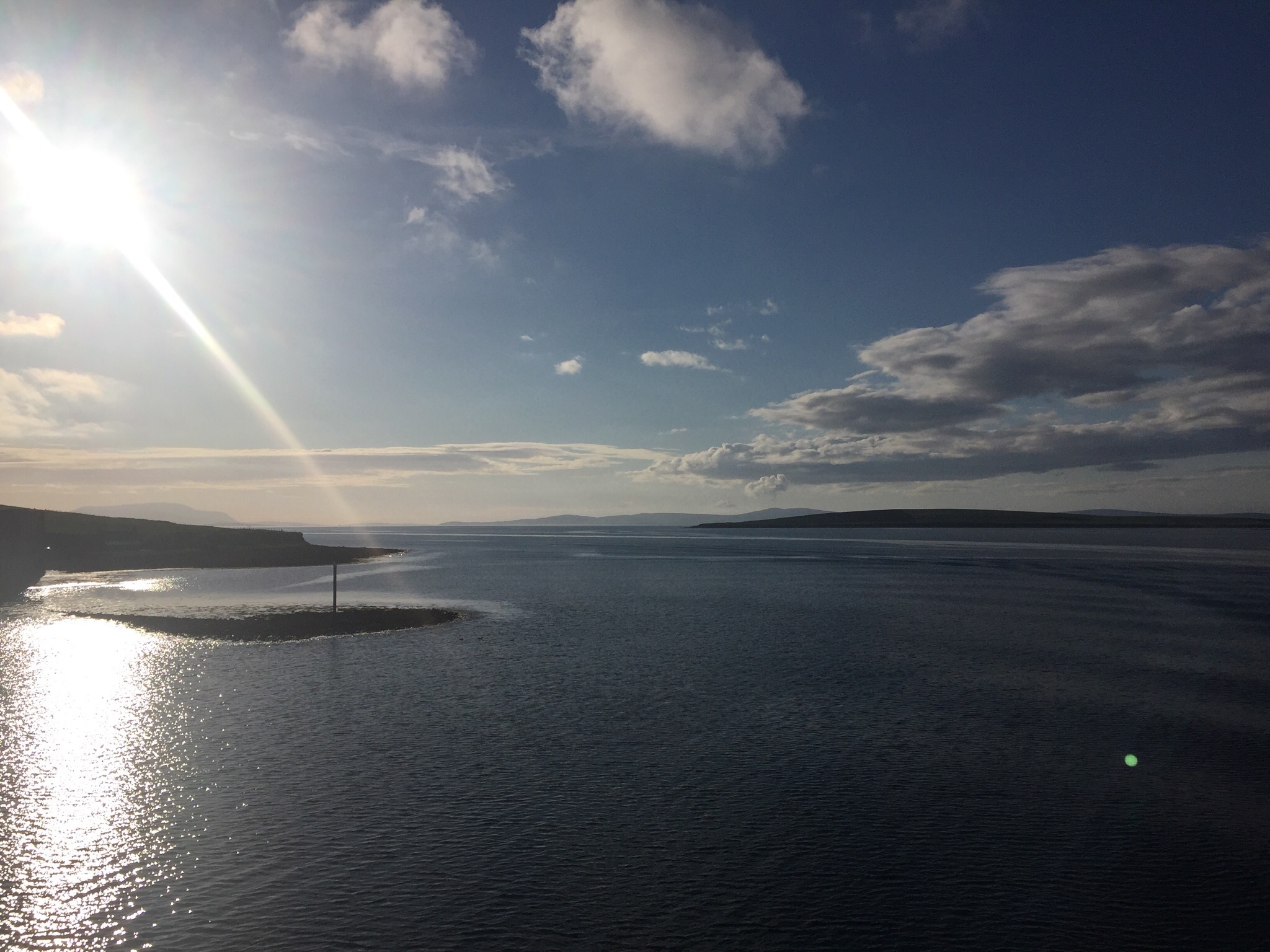 The fast Pentland Ferry from Gills Bay near John O’Groats docks on Orkney at the sheltered harbour of St Margaret’s Hope (known locally as “Hup”) on South Ronaldsay and nearly all vehicles disembarking are intent on making their next leg the 15 mile journey from here to Kirkwall. Google Maps correctly estimates this short distance to take an extraordinary 46 minutes – which presumes an average speed just under 20 mph. For although the road has many straight sections it is also very undulating with several sharp bends, and is conservative in width, so overtaking opportunities are limited and the first-time visitor may feel slightly apprehensive.